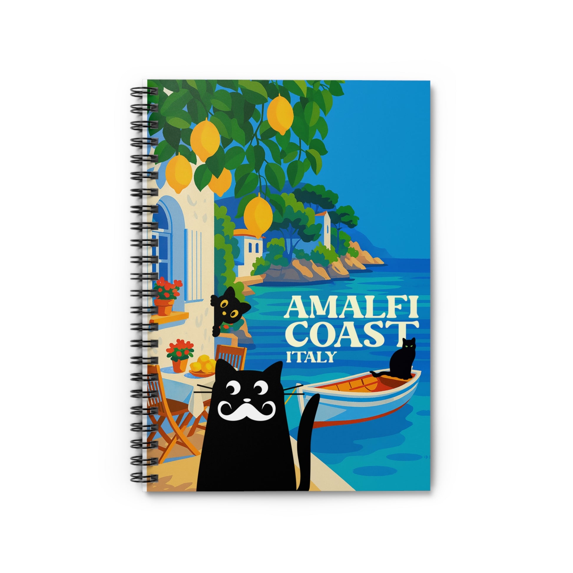 Amalfi Coast Cat Spiral Notebook - Perfect for Journaling, Travel Notes, and Gift Ideas, Cartoons, Italy Souvenir