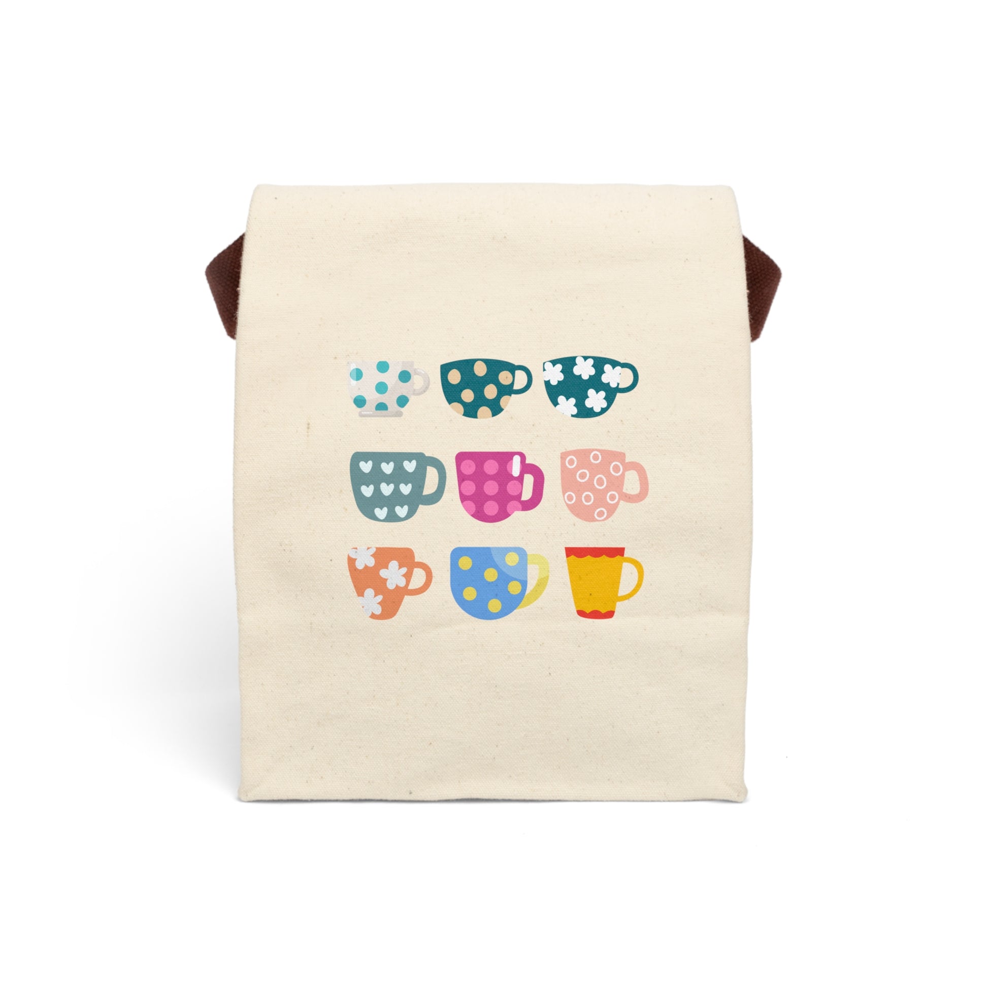 Cute Canvas Lunch Bag with Colorful Mug Design, Lunch Tote for Adults and Kids, Perfect for Back to School, Picnics, and Work