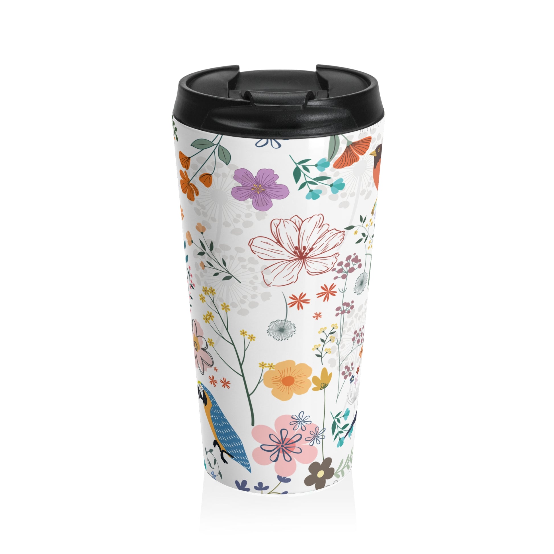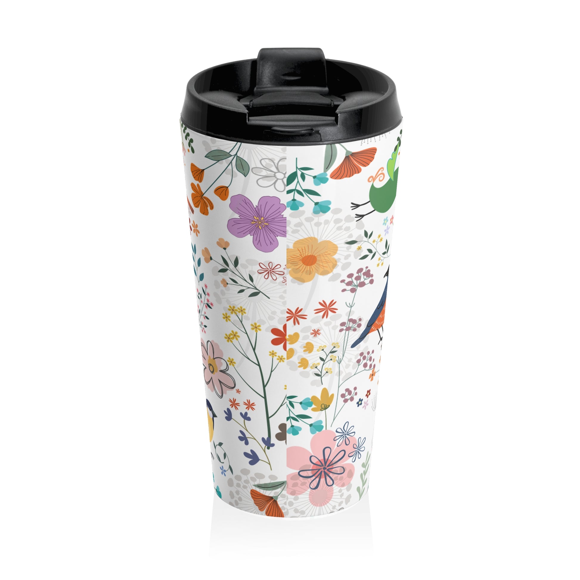 Floral Stainless Steel Travel Mug – Eco-Friendly Coffee Tumbler, Nature Lover Gift, Spring Drinkware for Outdoor Adventures