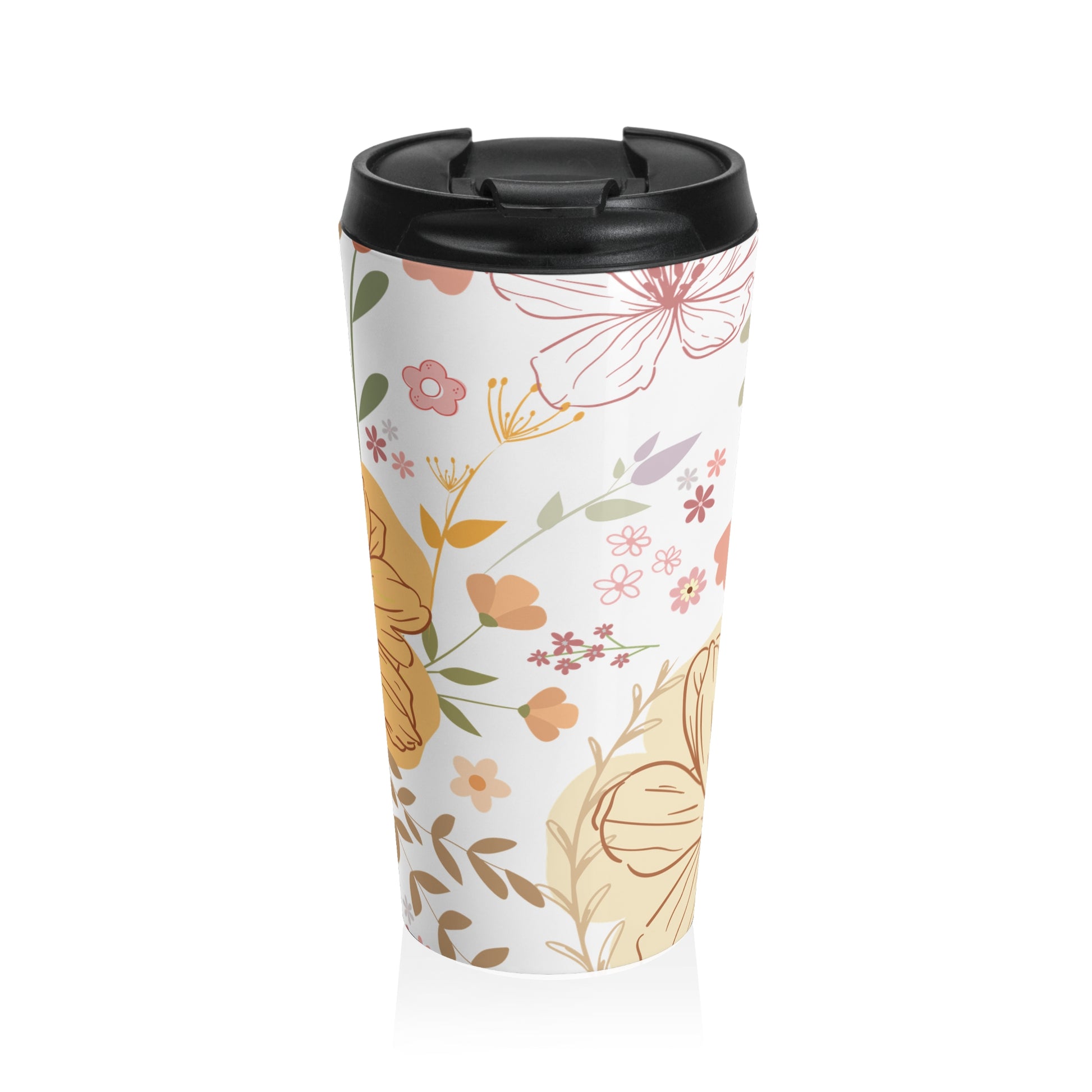 Floral Travel Mug – Stainless Steel Coffee Cup for Nature Lovers, Gift for Her, Insulated Hot Beverage Holder