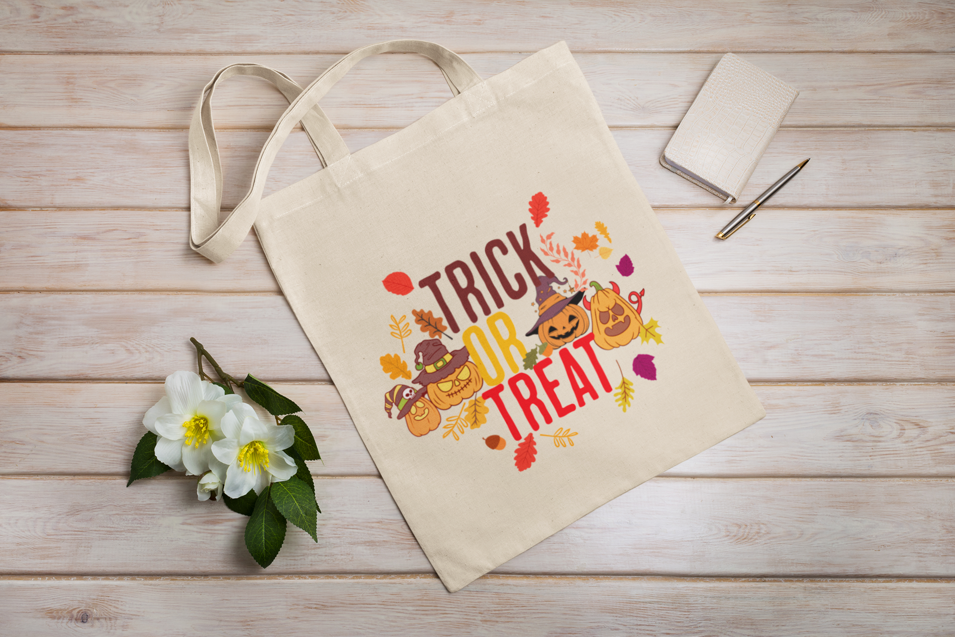 Halloween Cotton Canvas Tote – Reusable Trick or Treat Shopper, Spooky Gift Bag, Fall Festival Tote, Eco-Friendly Holiday Accessory