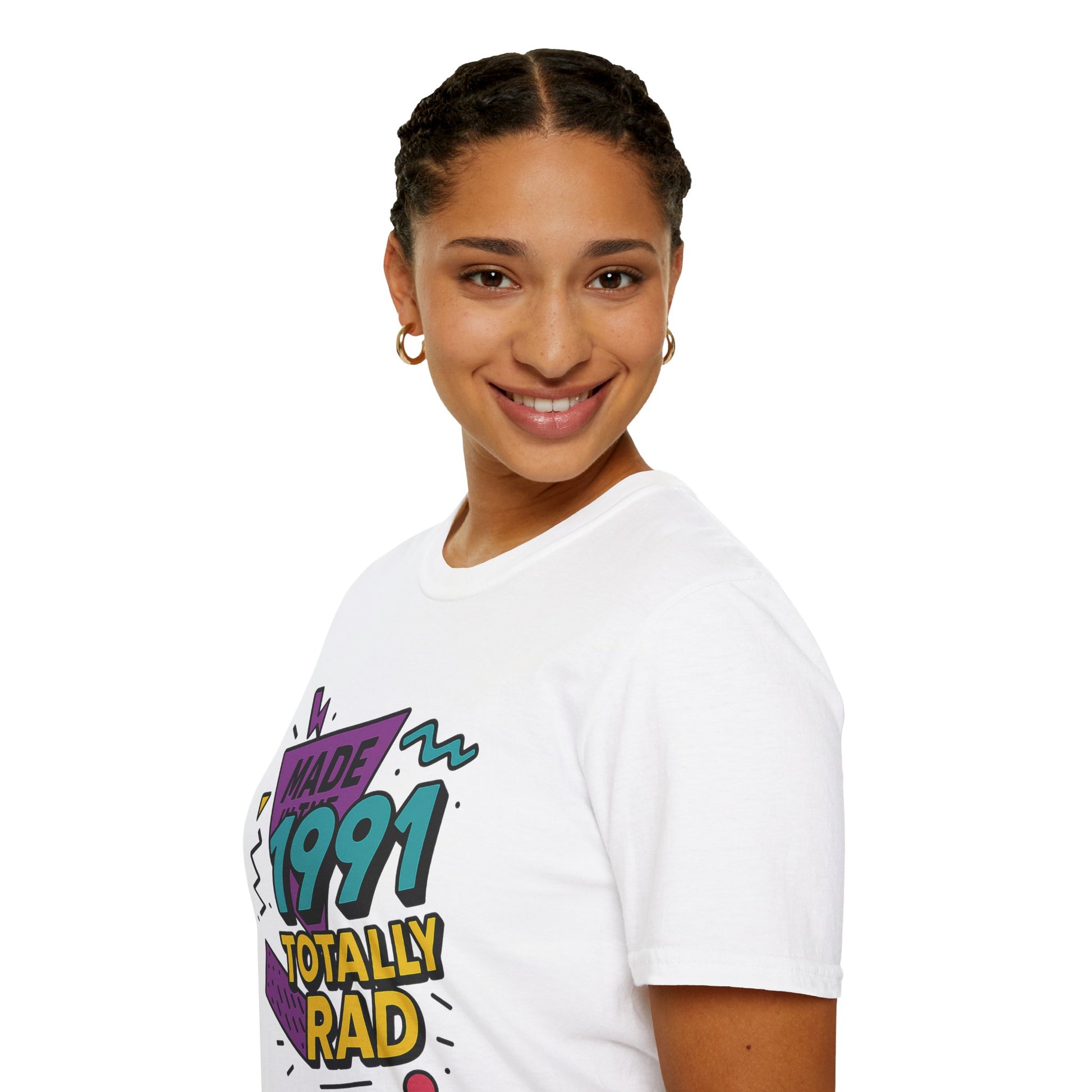 Made in 1991 Totally Rad T-Shirt Retro 90s Birthday Vintage Tee