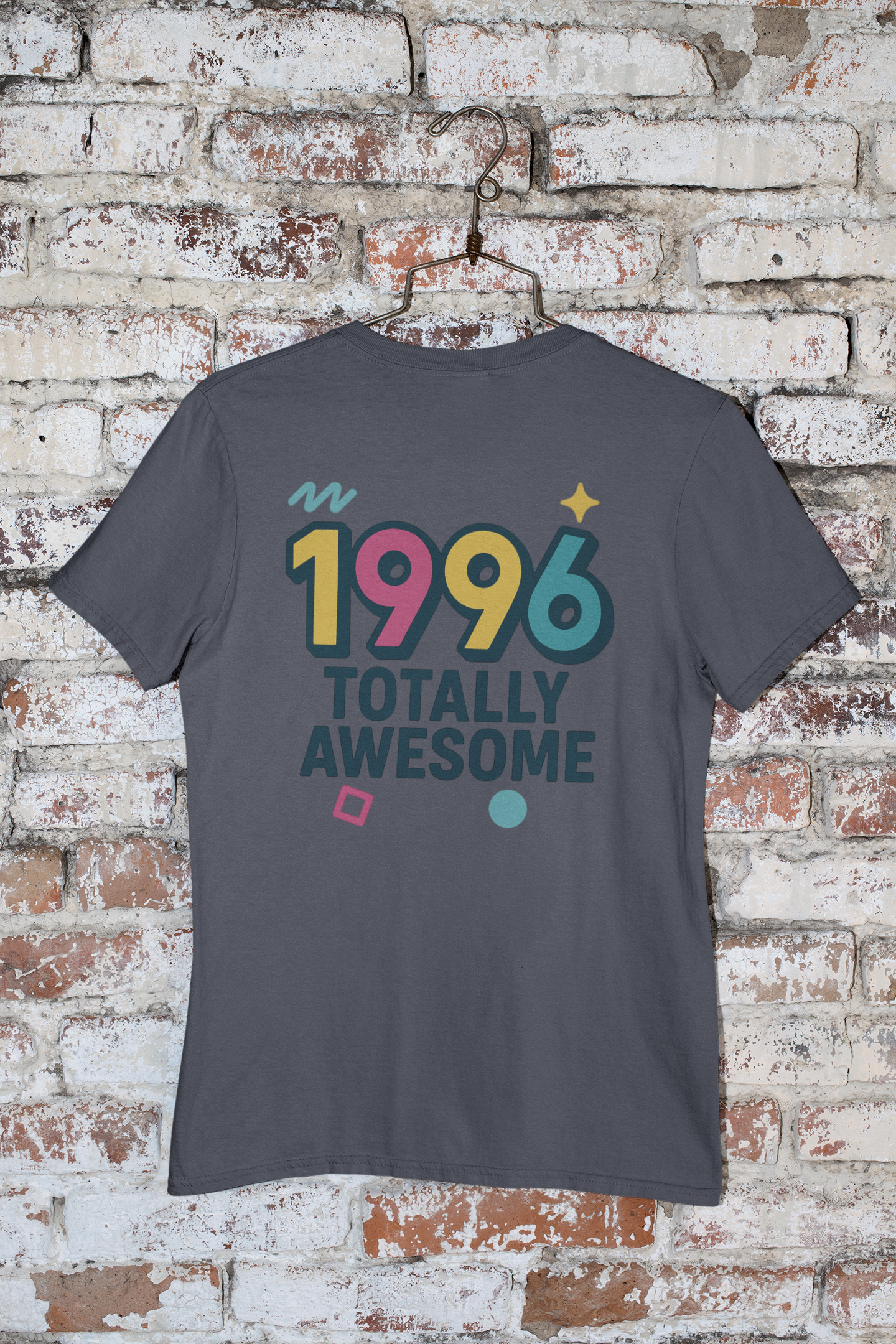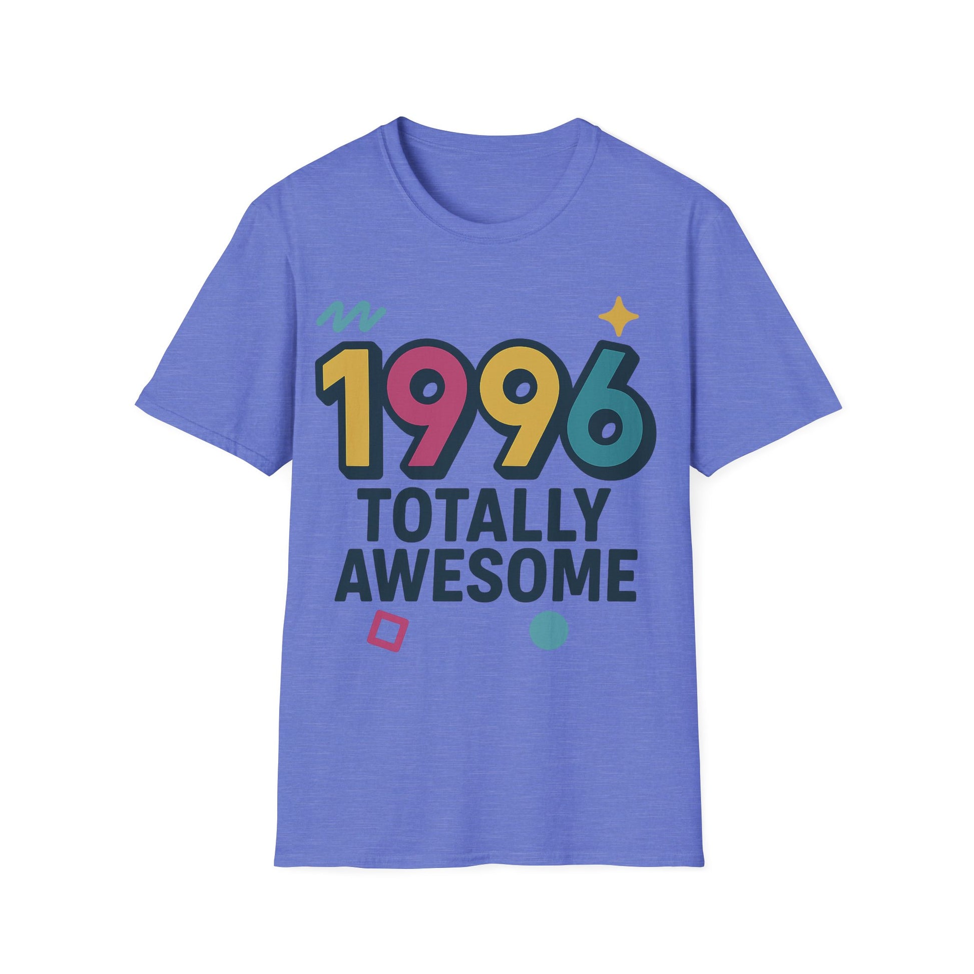 Celebrate your birth year in style with this Made in 1996 graphic T-shirt, featuring bold 90s-inspired colors and a fun retro design. Printed on the Gildan Softstyle 64000, this unisex tee offers an ultra-soft feel, modern fit, and all-day comfort. Solid colors are made from 100 percent ring-spun cotton, with durable blends for heather options, making it perfect for birthdays, everyday wear, or anyone who loves classic 90s nostalgia.