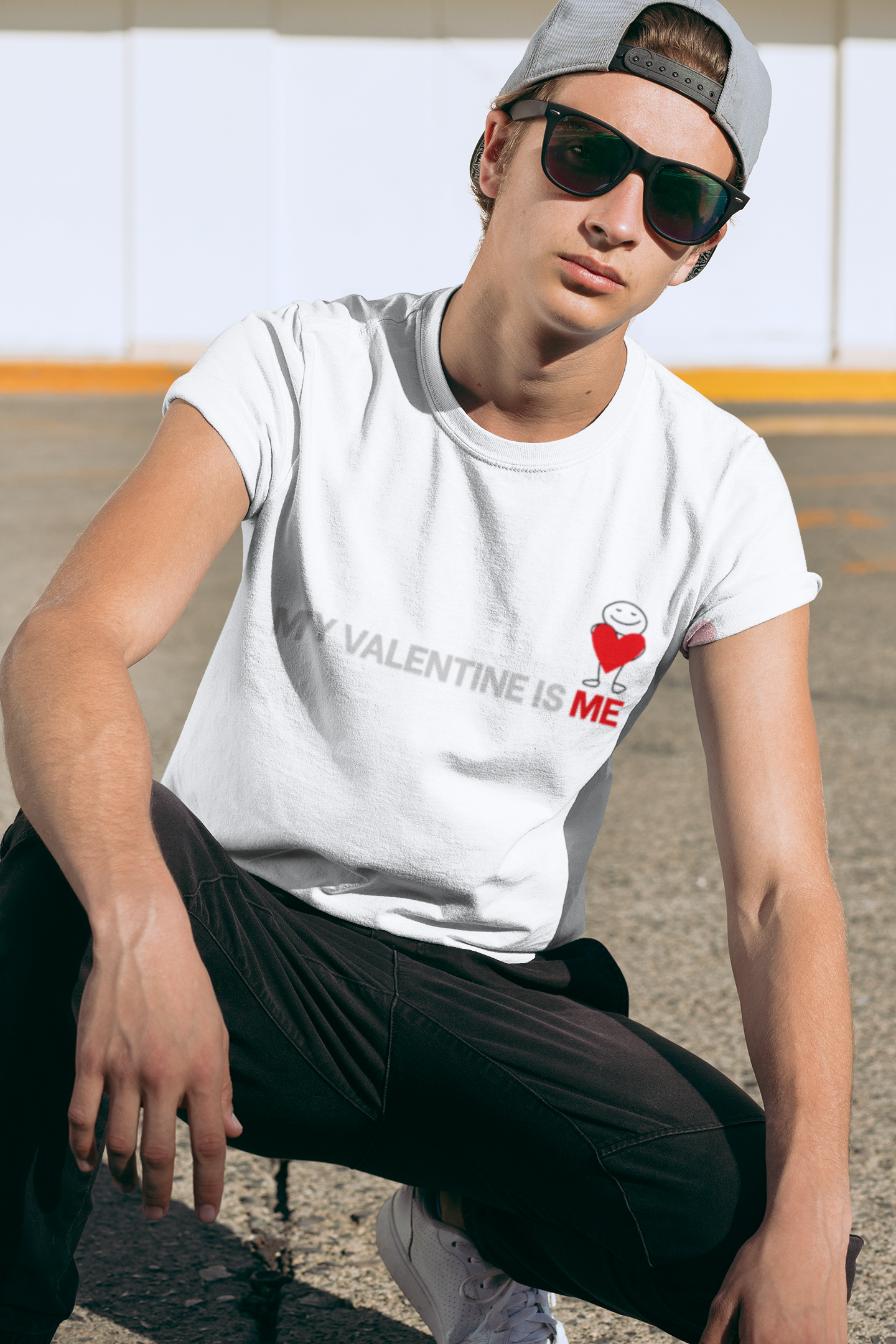 This My Valentine Is Me t-shirt is a soft, everyday graphic tee that quietly celebrates self-love. Centered on the chest is a clean, modern design featuring muted gray text reading MY VALENTINE IS, with ME highlighted in red alongside a small outlined heart and a tiny solid heart—confident, minimal, and a little cheeky. Made from medium-weight cotton, this unisex tee feels comfortable against the skin and holds print detail crisply. Easy to wear layered under a jacket or on its own, it’s perfect for coffee runs, cozy nights in, or casual Valentine’s plans when you want to celebrate yourself first.