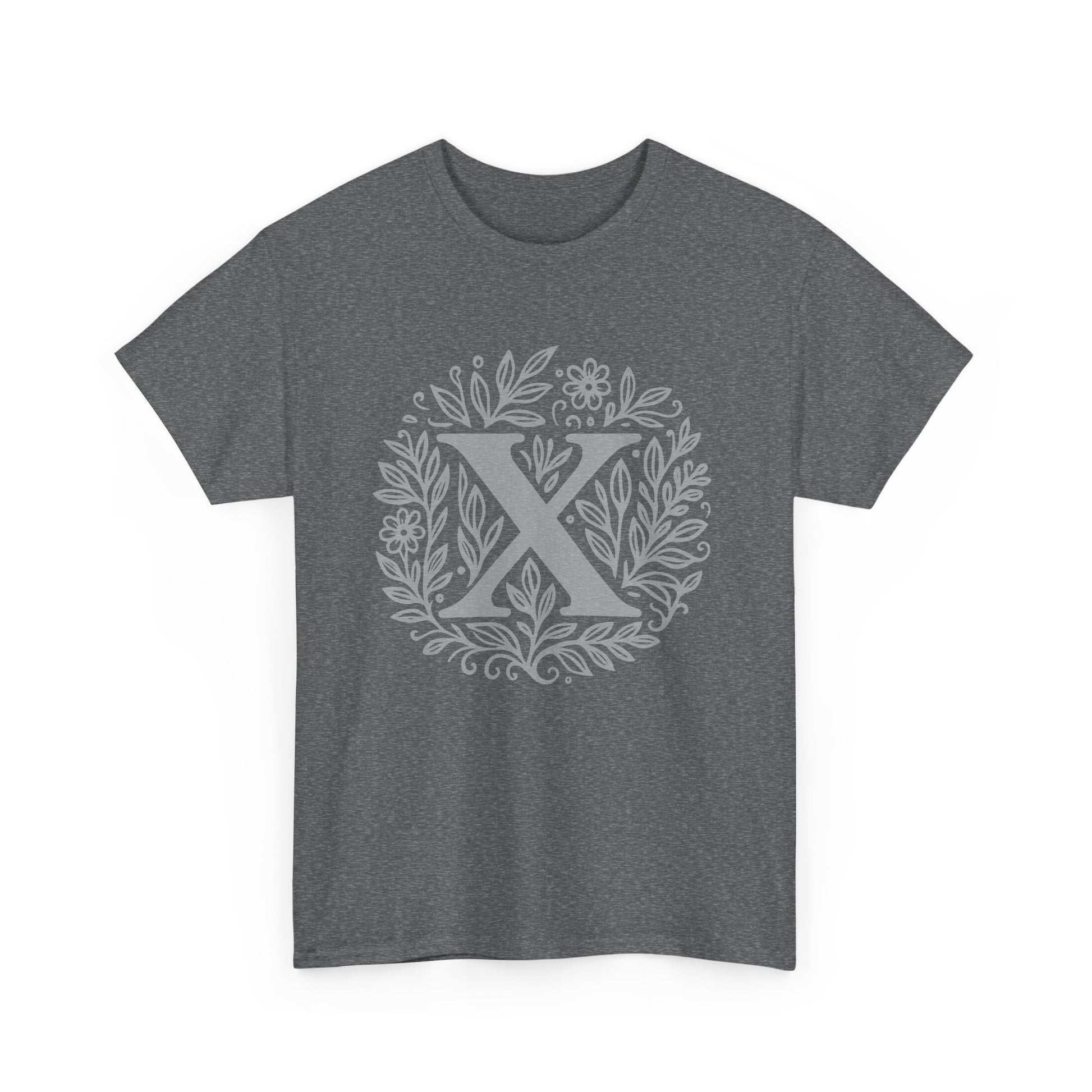 Personalized Initial X, Unisex Heavy Cotton Tee, Custom Graphic T-Shirt, Gifts for Her, Birthday, Casual Wear, Women's Fashion