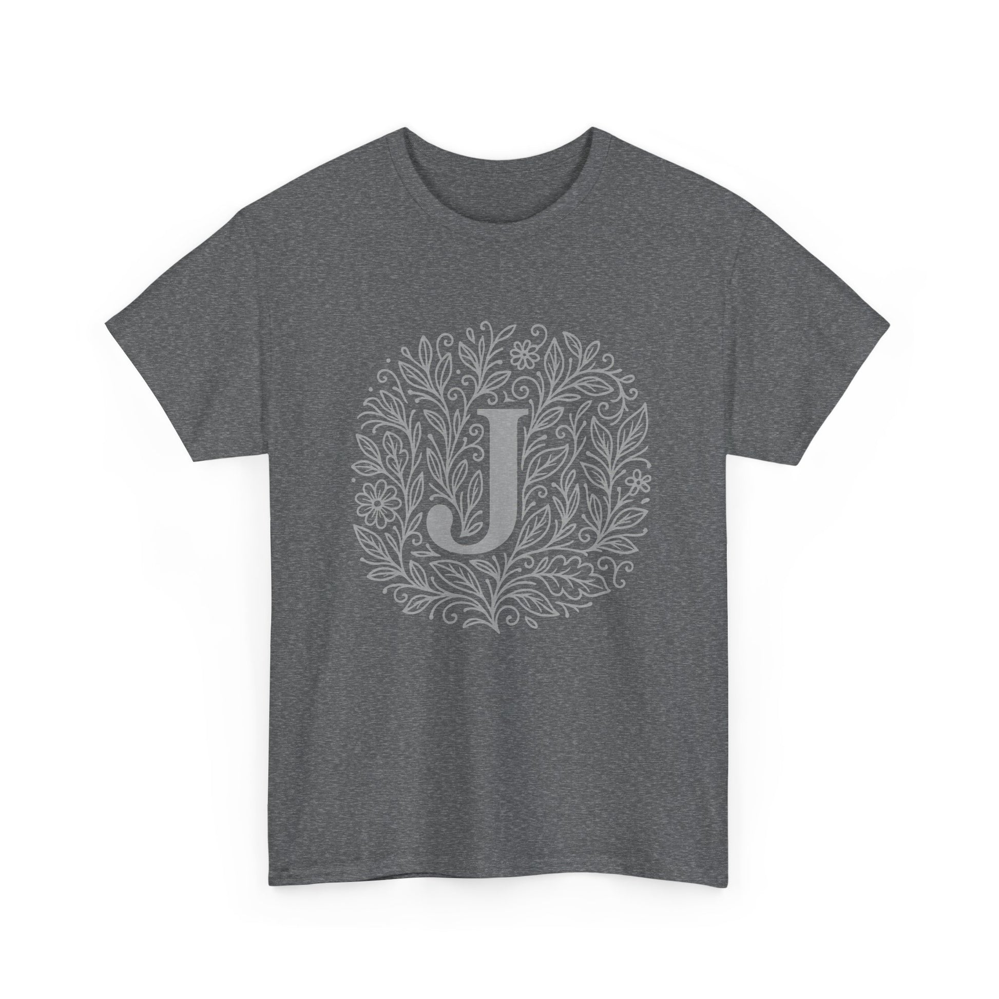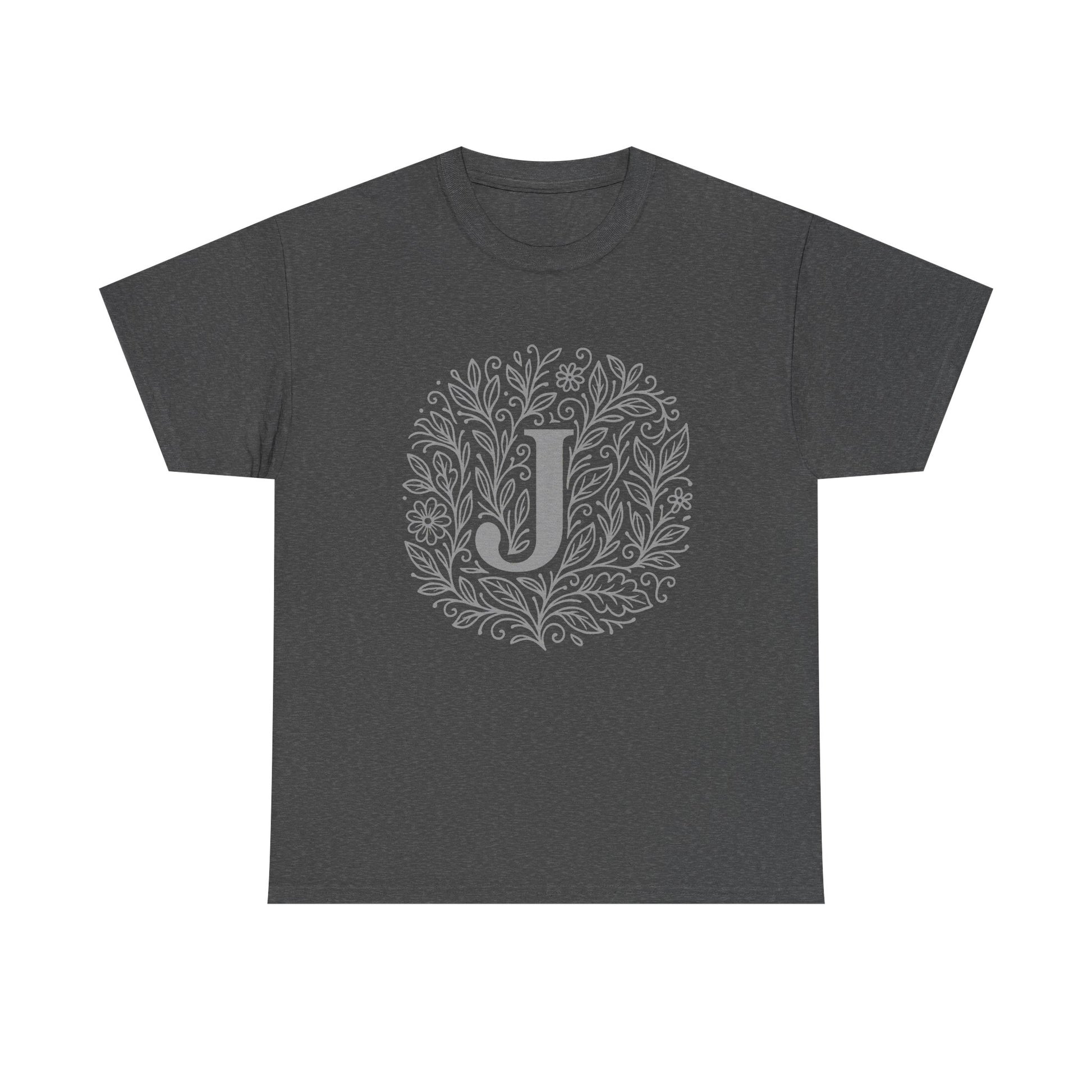 Personalized Initial J, Unisex Heavy Cotton Tee, Custom Graphic T-Shirt, Gifts for Her, Birthday, Casual Wear, Women's Fashion