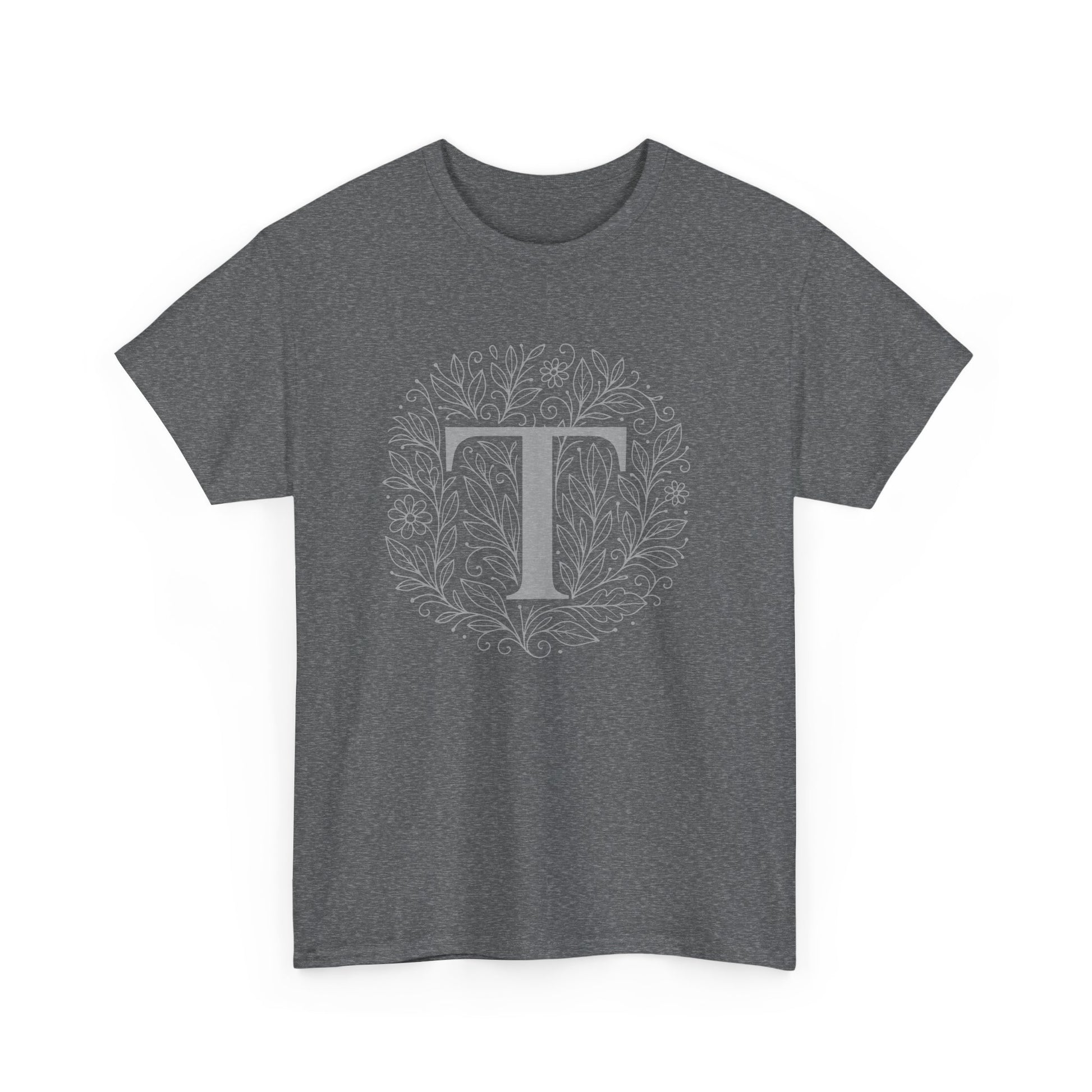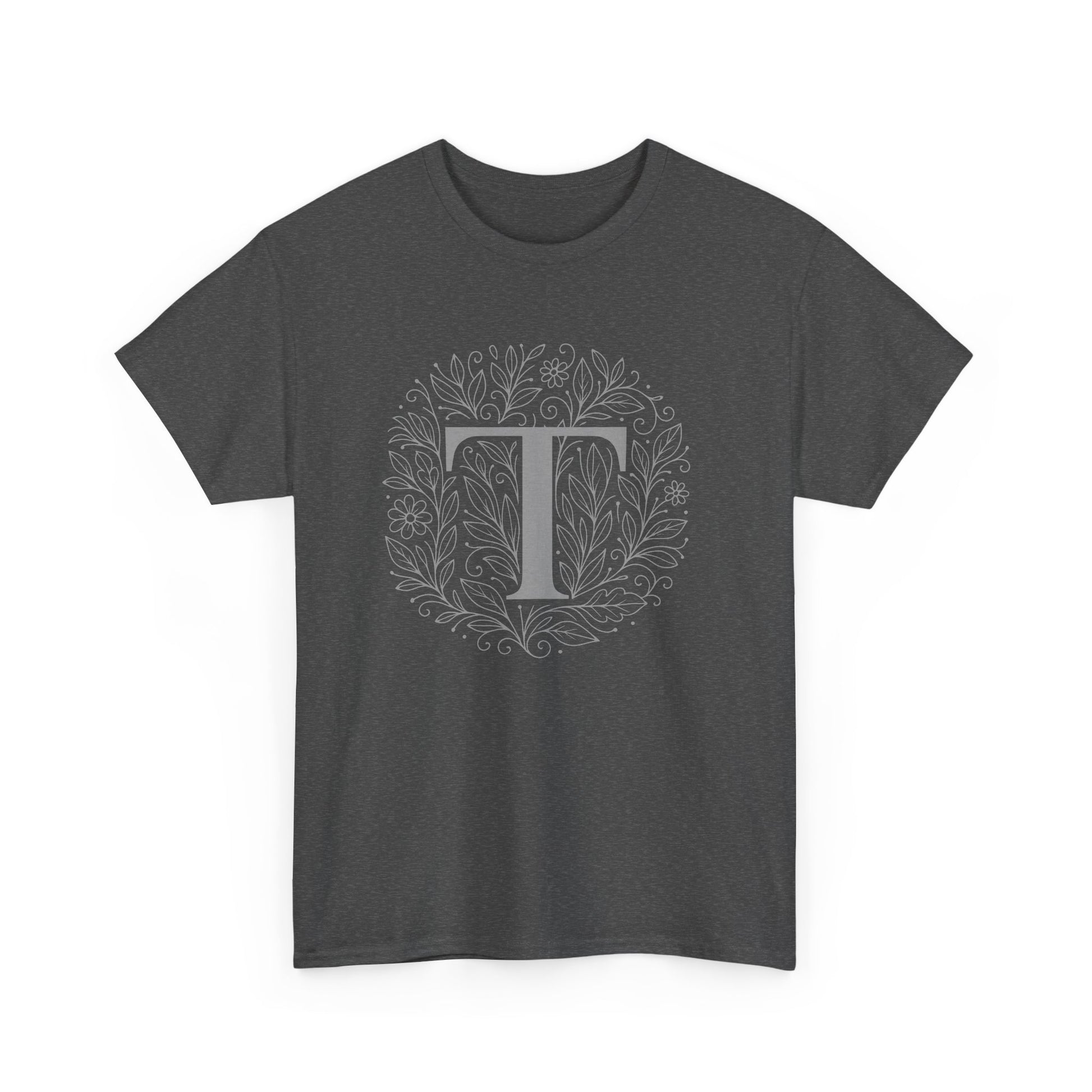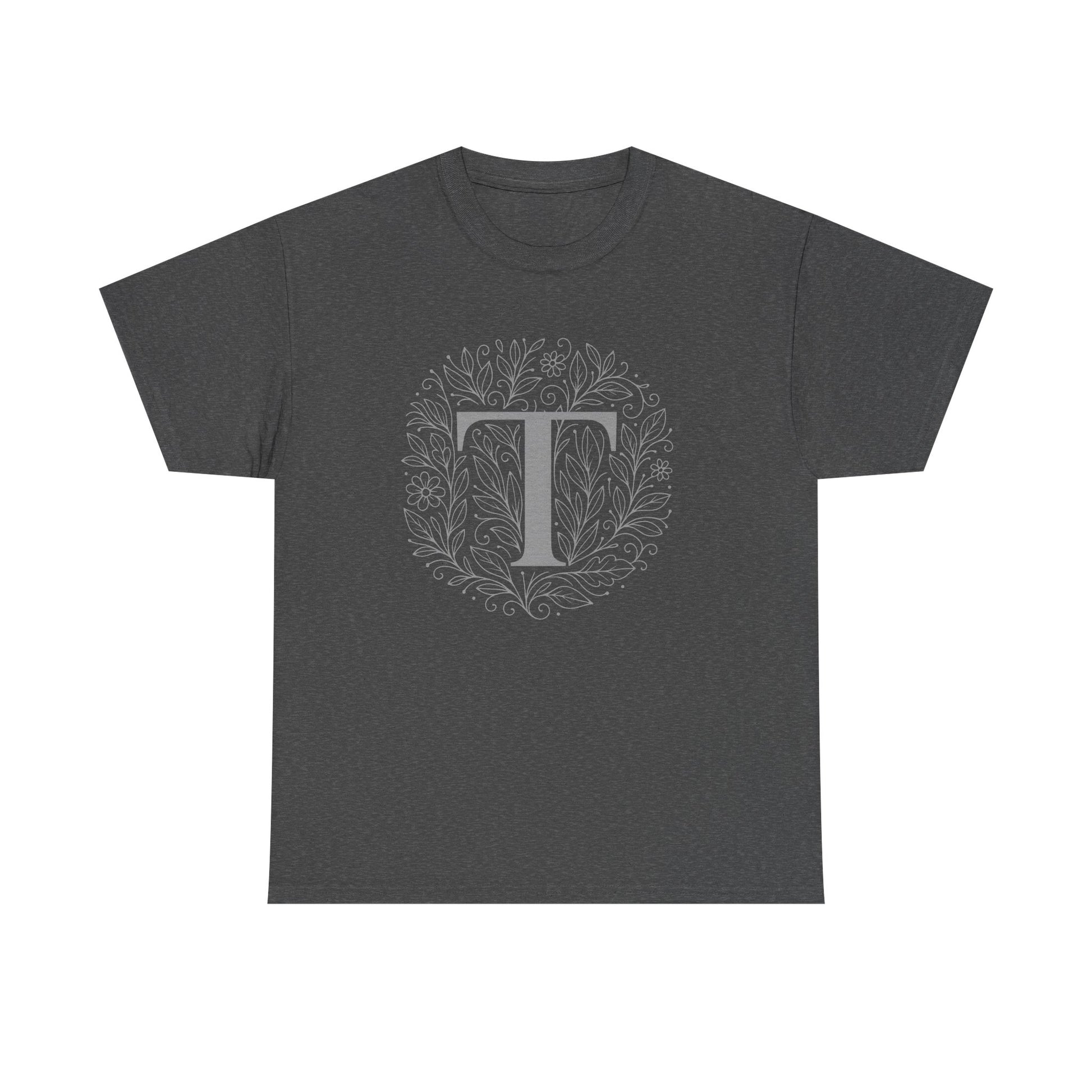 Personalized Initial T, Unisex Heavy Cotton Tee, Custom Graphic T-Shirt, Gifts for Her, Birthday, Casual Wear, Women's Fashion