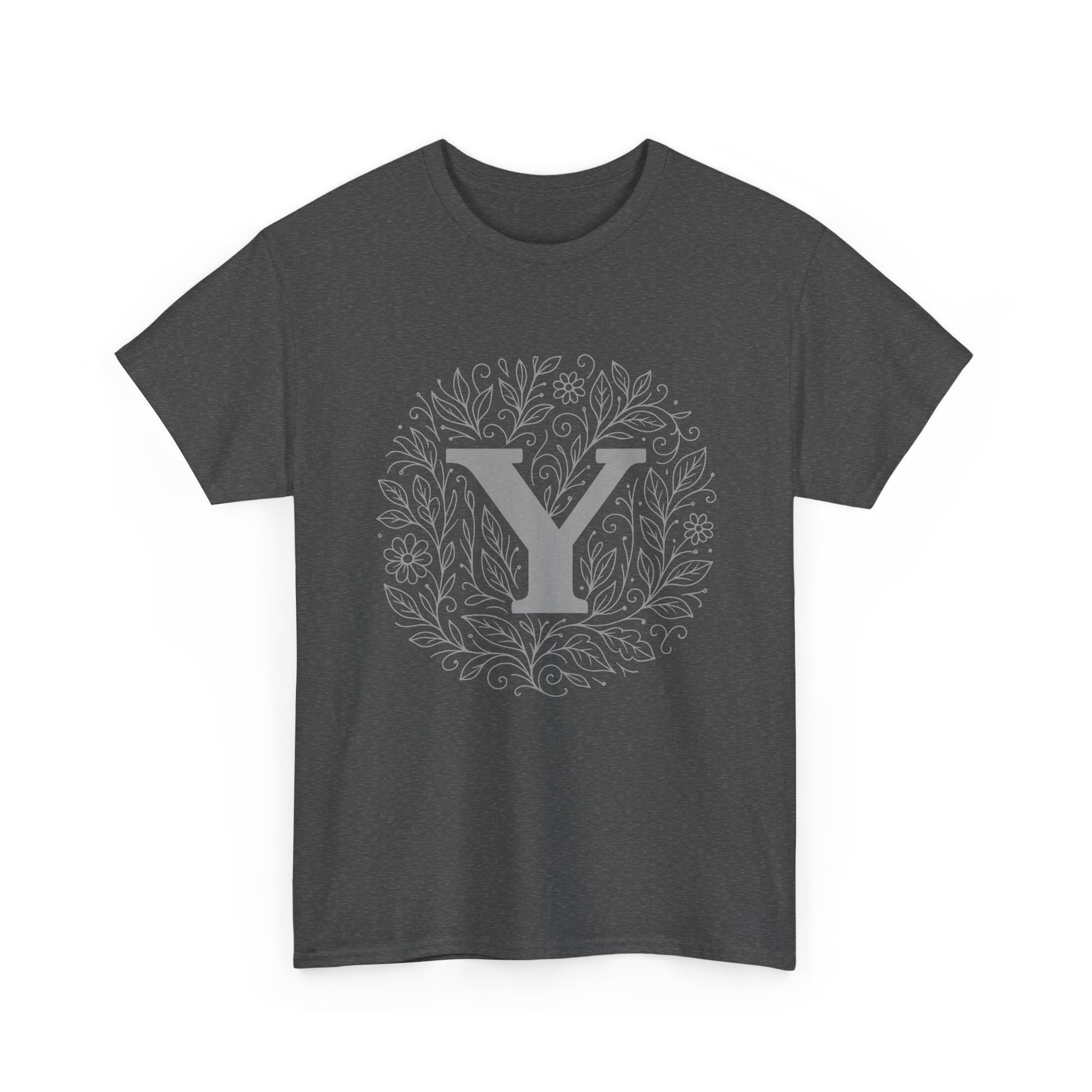 Personalized Initial Y, Unisex Heavy Cotton Tee, Custom Graphic T-Shirt, Gifts for Her, Birthday, Casual Wear, Women's Fashion