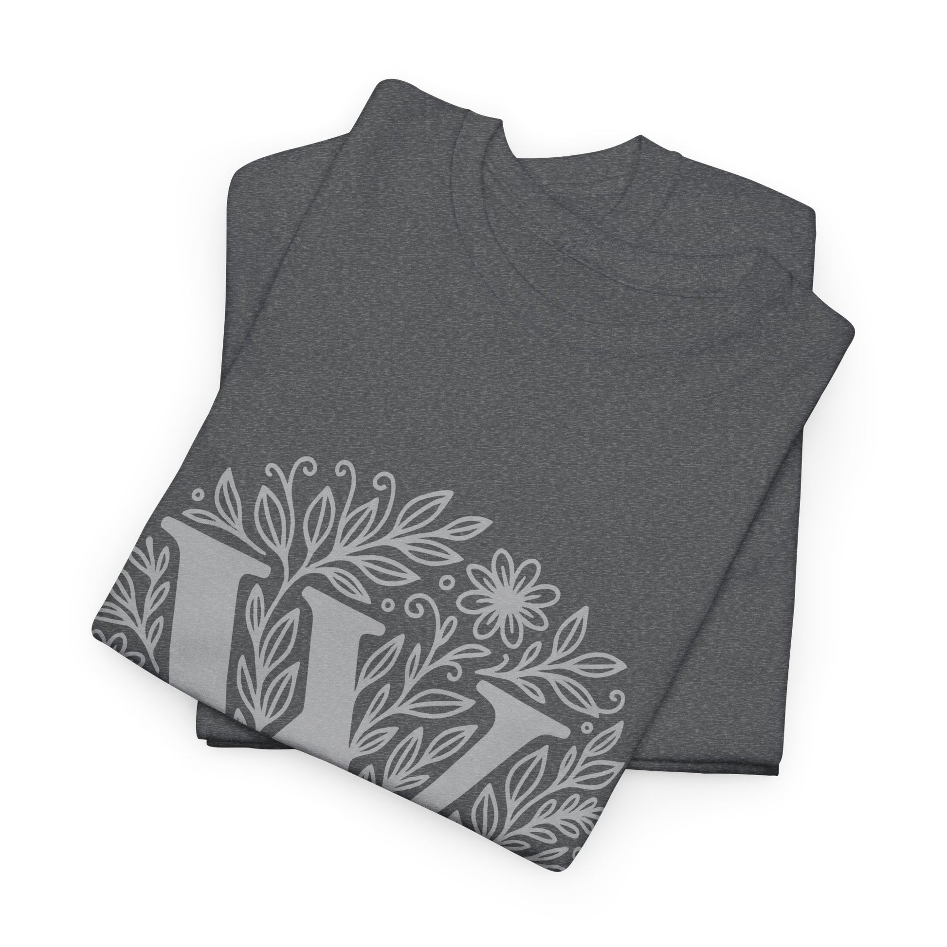 Personalized Initial W, Unisex Heavy Cotton Tee, Custom Graphic T-Shirt, Gifts for Her, Birthday, Casual Wear, Women's Fashion