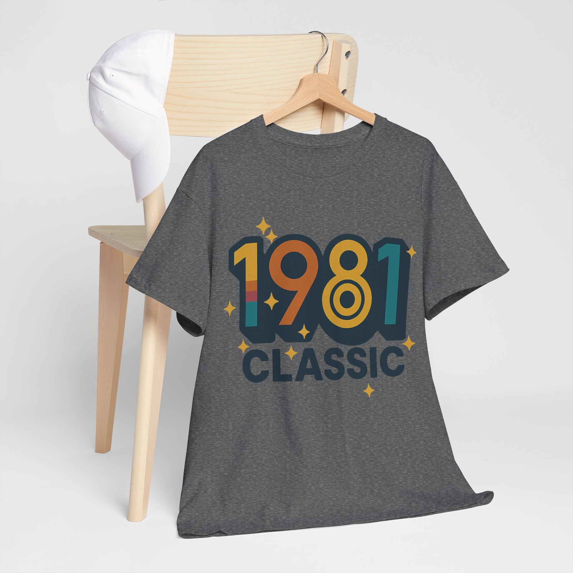 Retro 1981 T-Shirt – Celebrate life’s vibrant moments with this unisex heavy cotton tee featuring a fun, colorful design. Perfect for birthdays, family gatherings, or everyday wear, this shirt adds a laid-back vibe to any casual outfit. Comfortable and durable, it’s a thoughtful gift for anyone who loves vintage style. Ideal for brunch, outings with friends, or relaxing at home, this retro tee blends comfort with personality.