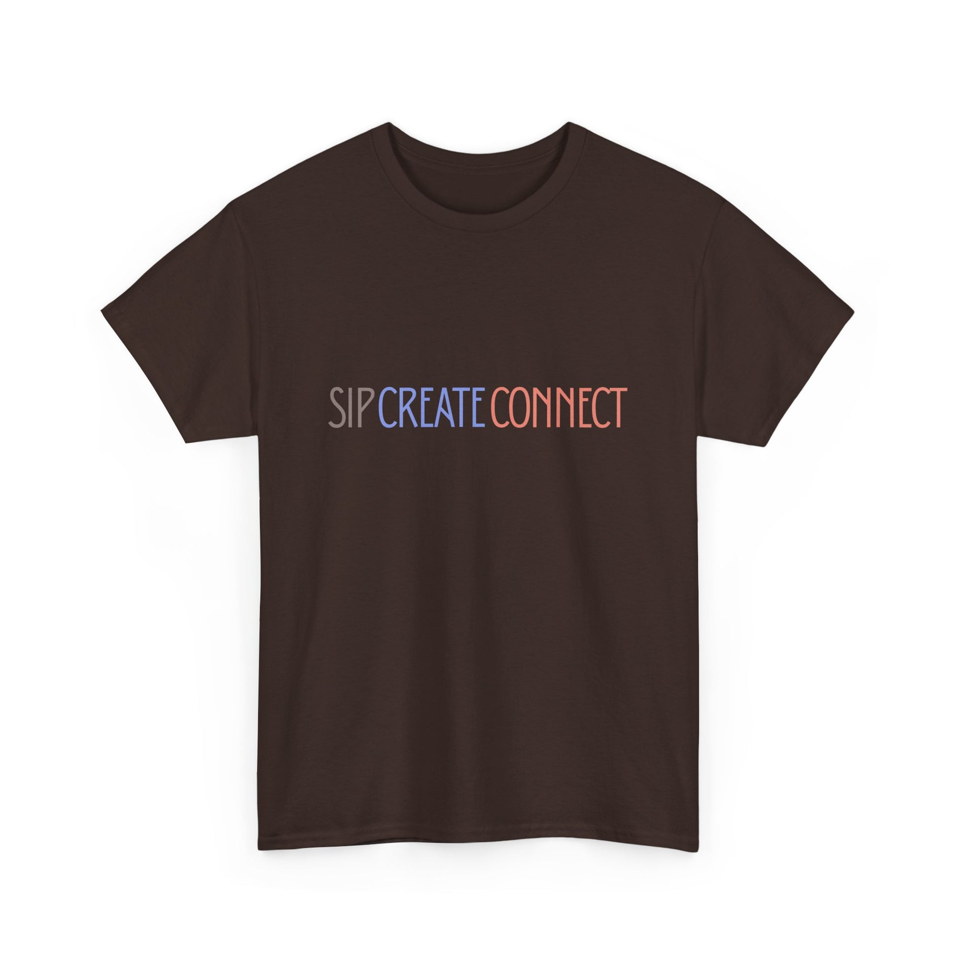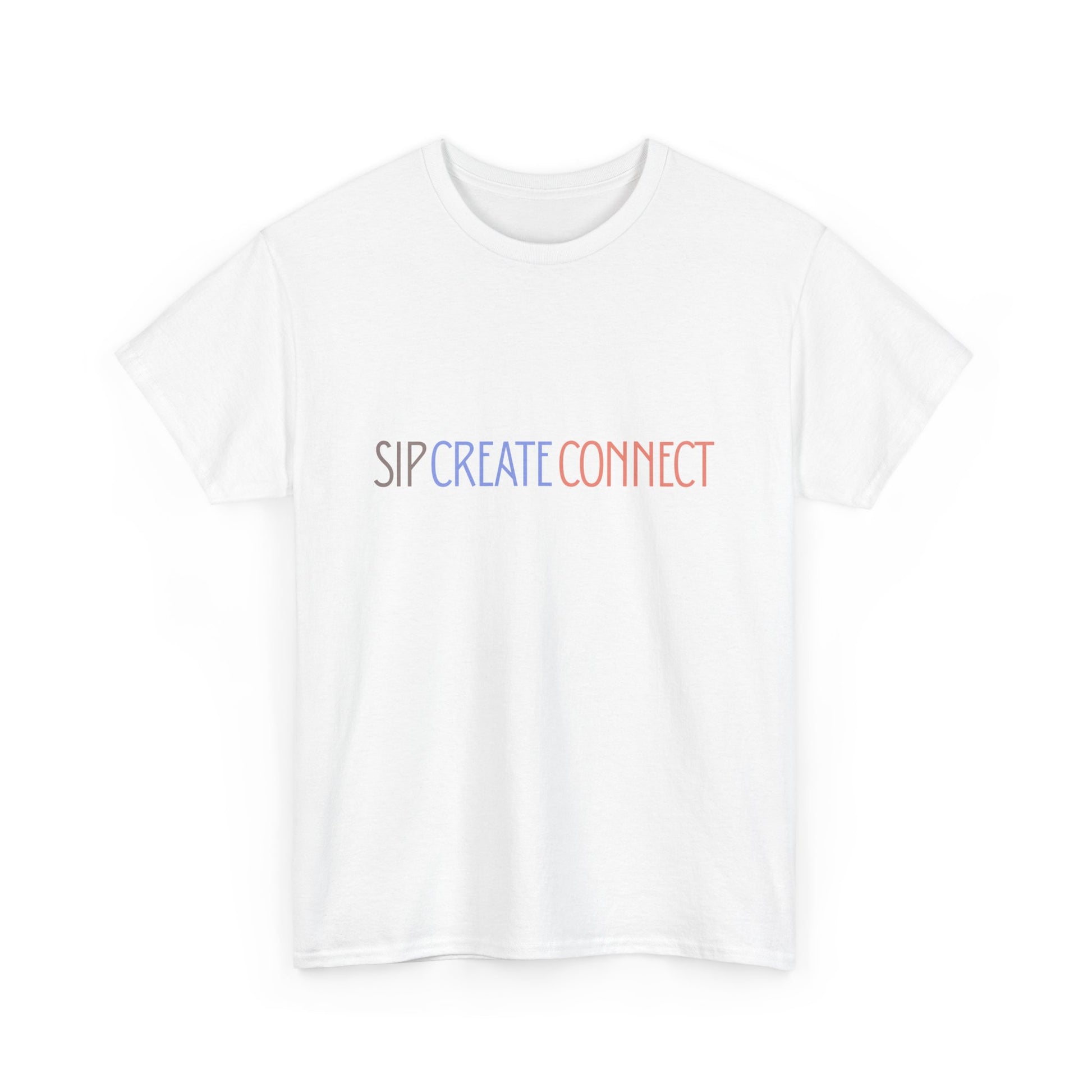 Sip Create Connect T-Shirt | Minimal Pastel Typography Tee | Creative Community Shirt