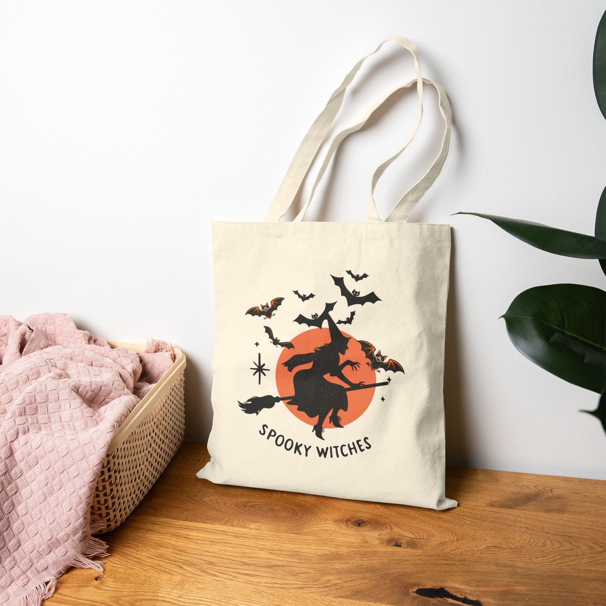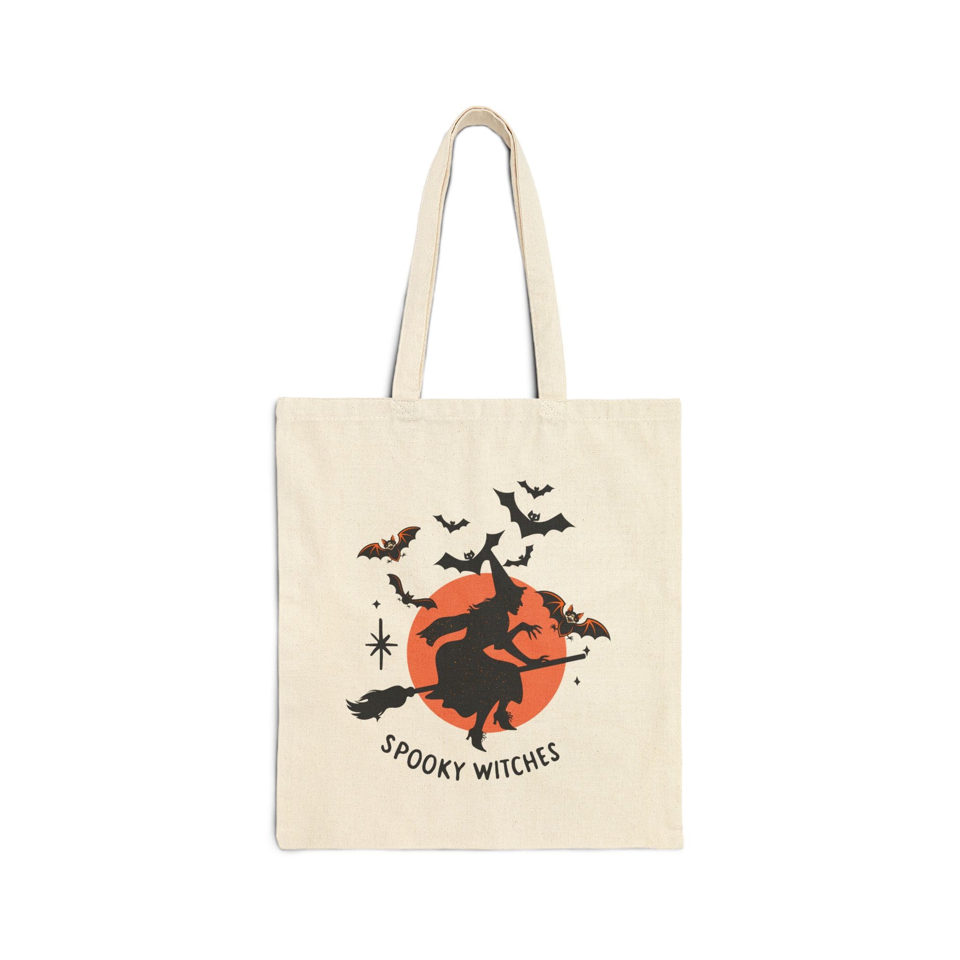 Spooky Witches Tote Bag, Halloween Canvas Bag, Eco Friendly Grocery Tote, Witchy Gift Idea, Fall Reusable Shopping Bag