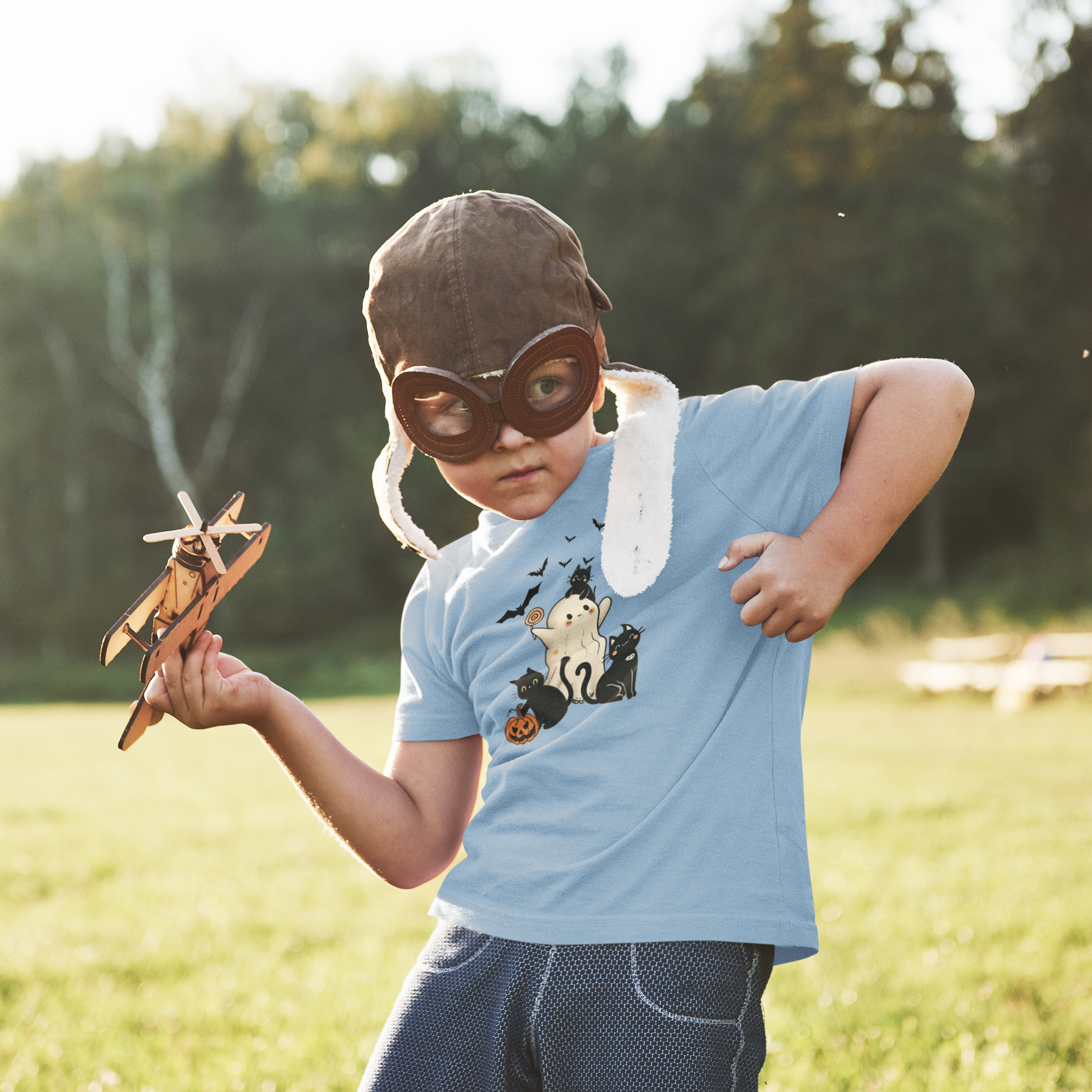 Toddler Halloween Ghost T-Shirt Cute Ghost & Cat Kids Costume Top, Spooky Toddler Tee, Fall Festival Outfit