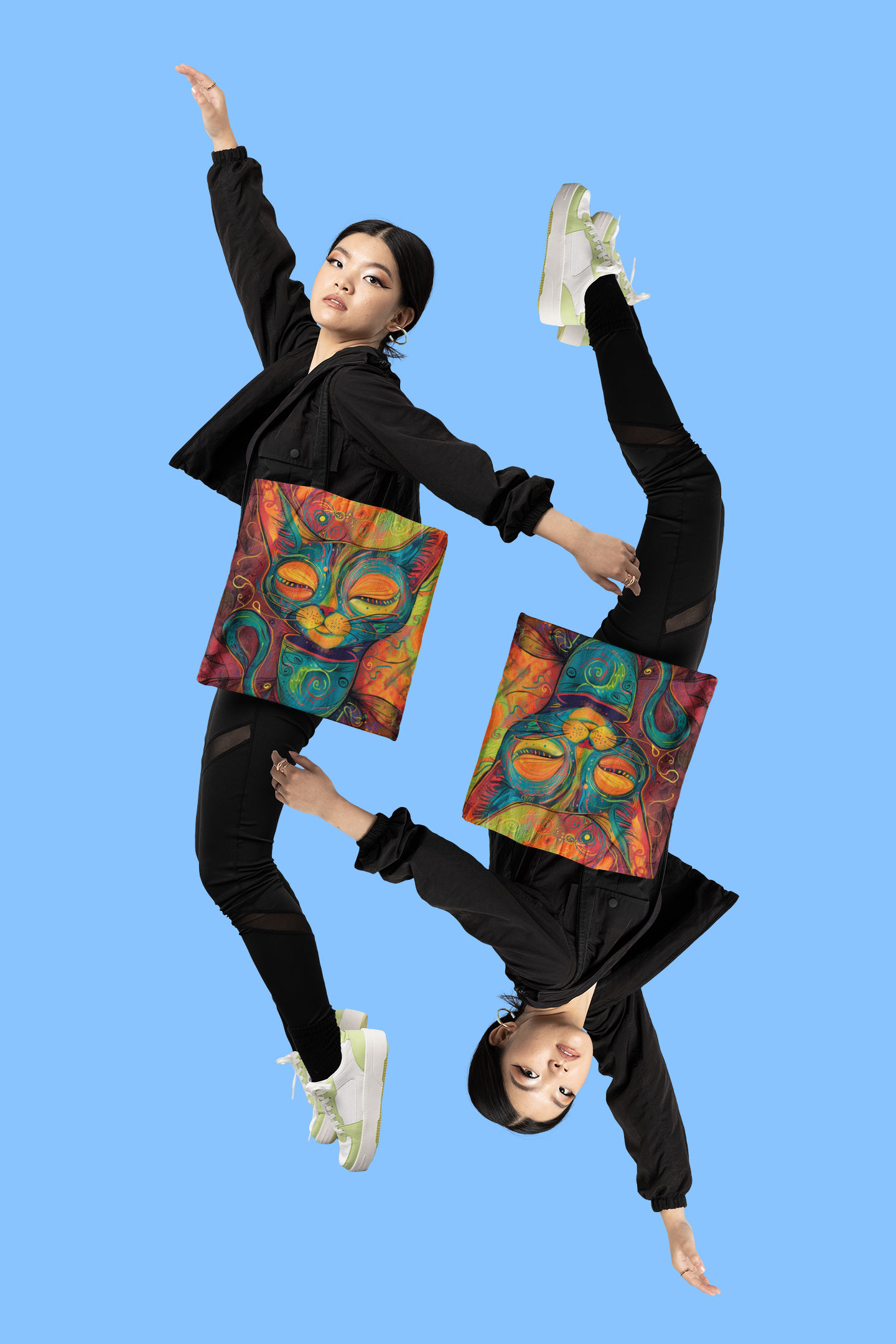 Vibrant Cat & Coffee Tote Bag - Abstract Cat Lover Gift, Cute AOP Reusable Tote for Busy Women, Coffee Cat Mom Bag